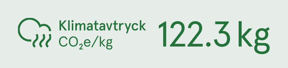 Produktens klimatpåverkan visas som antalet kilo koldioxidekvivalenter utsläppta per kilo av produkten (CO2e/kg).