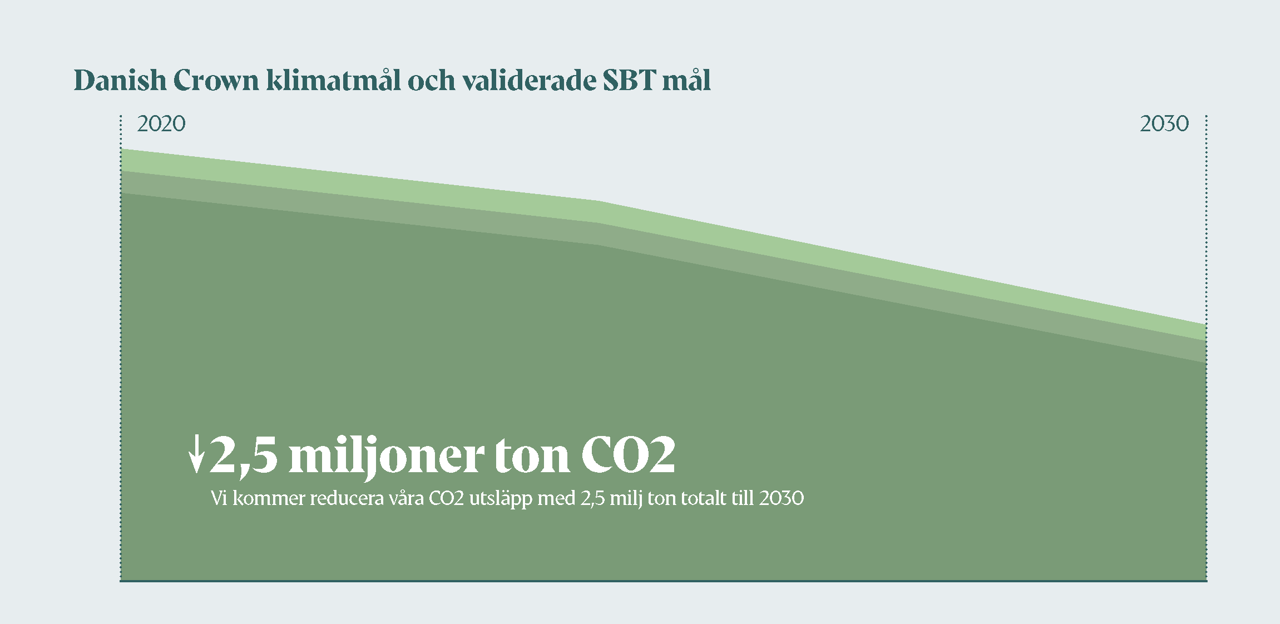 Vi har som målsättning att minska de absoluta växthusgaserna relaterat till vår egen verksamhet med 42 procent och utsläppen i vår värdekedja med 20 procent per producerad kg år 2023 jämfört med referensåret 2020. Detta åtagande innebär en minskning av CO2 utsläpp med ungefär 2,5 miljoner ton.