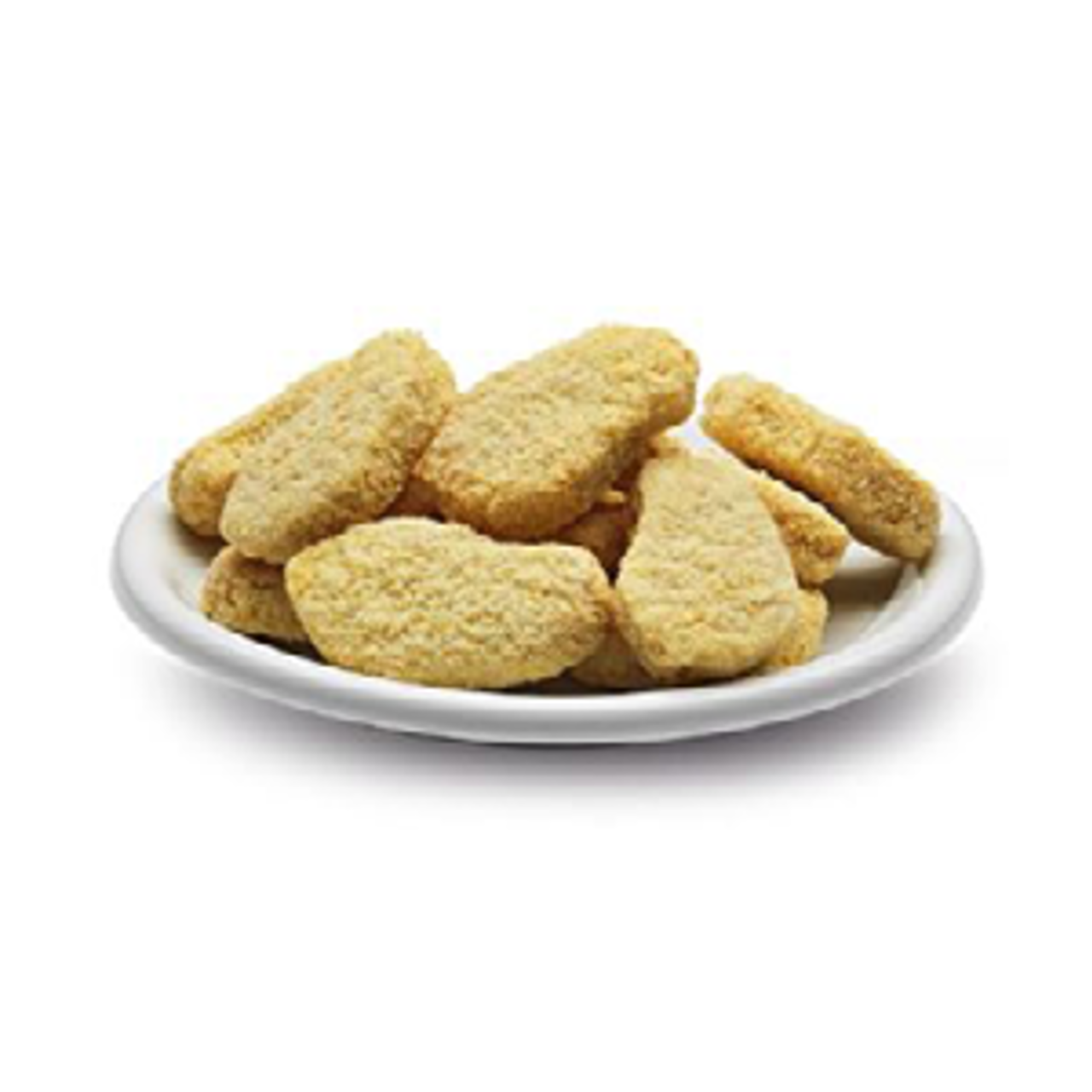Krispiga panerade vegetariska nuggets baserade på vete- och ärtprotein. Texturen och smaken påminner om kyckling och är perfekt för både skollunchen och barnmenyn.