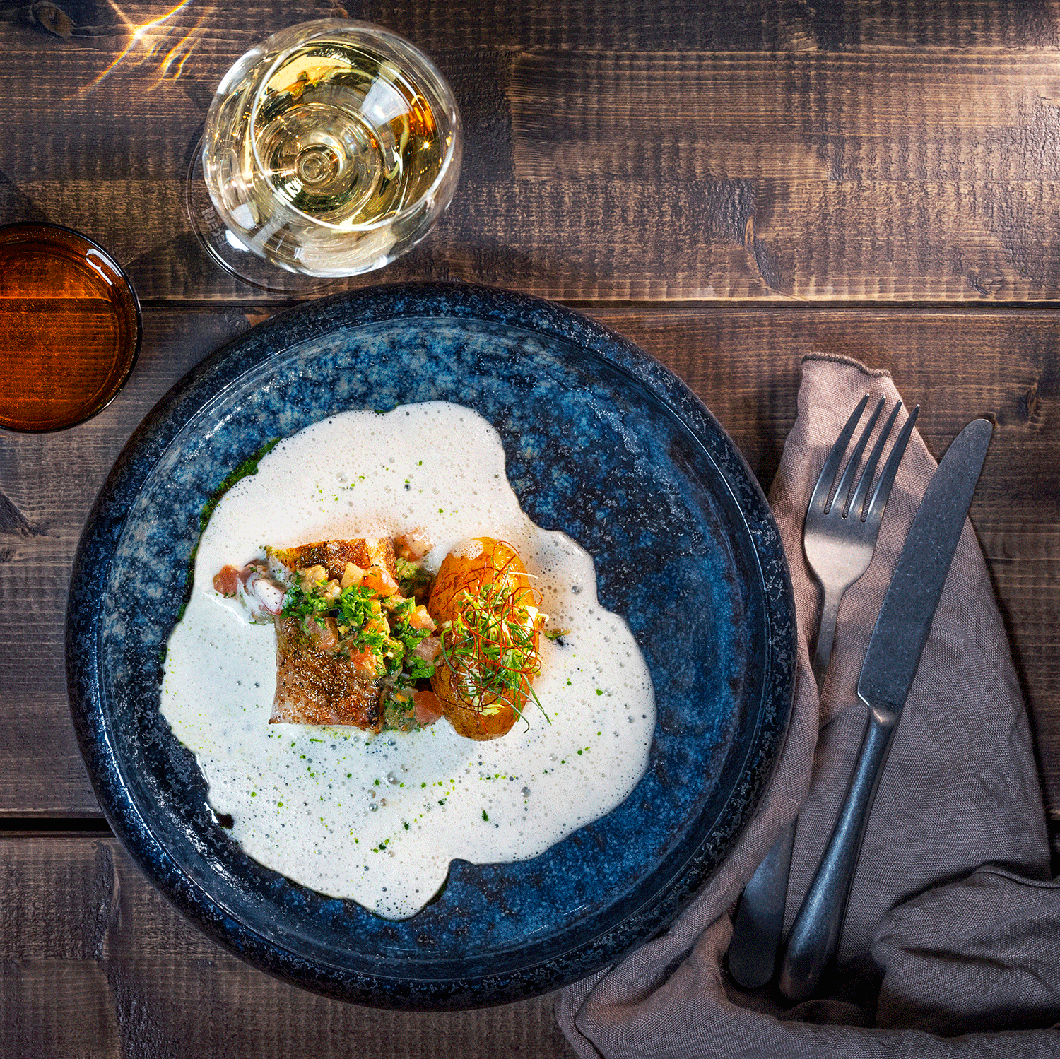 I Länge leve måltiden avsnitt 18 har vi valt att duka med en tallrik i blå nyans från serien Sea från Playground. Tallriken har en högre kant, är tillverkad i stengod som tål både diskmaskin och mikro, och finns i flera storlekar.