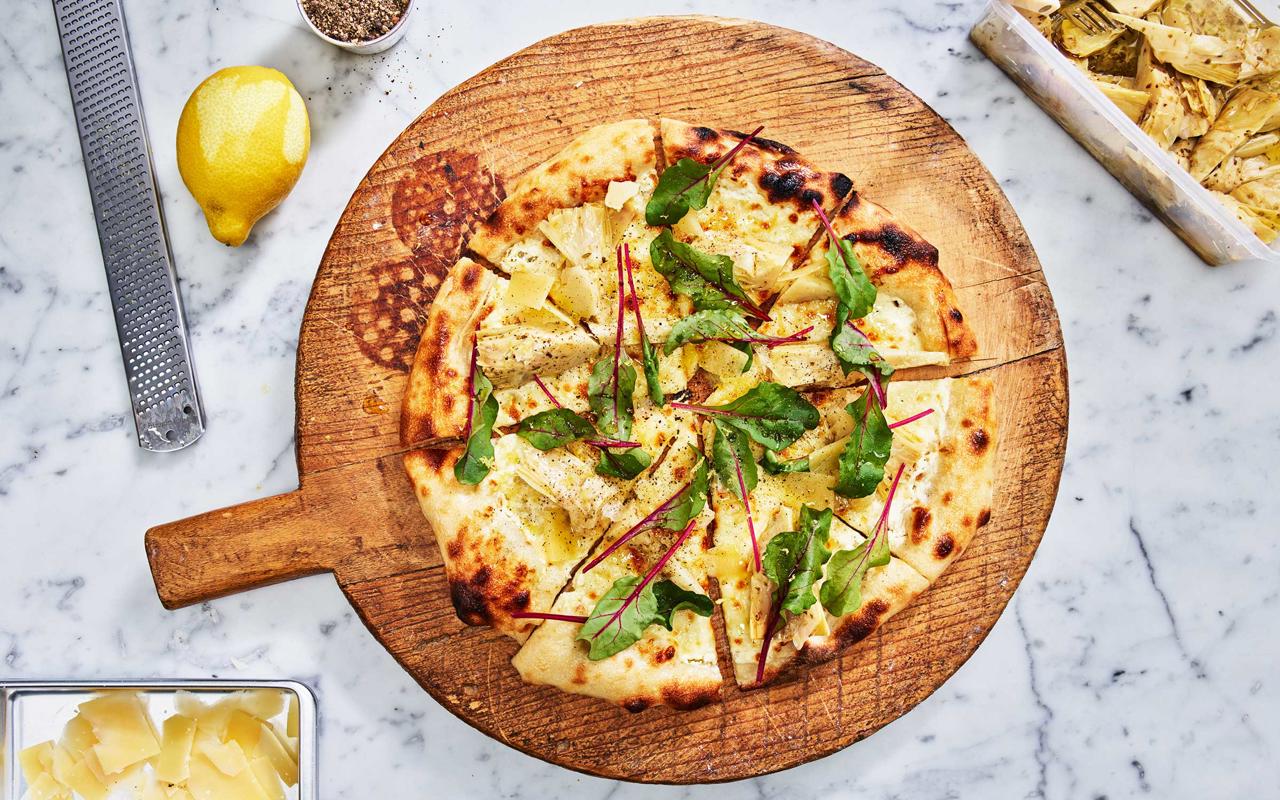 Pizza med kronärtskocka, citron och svartpeppar
