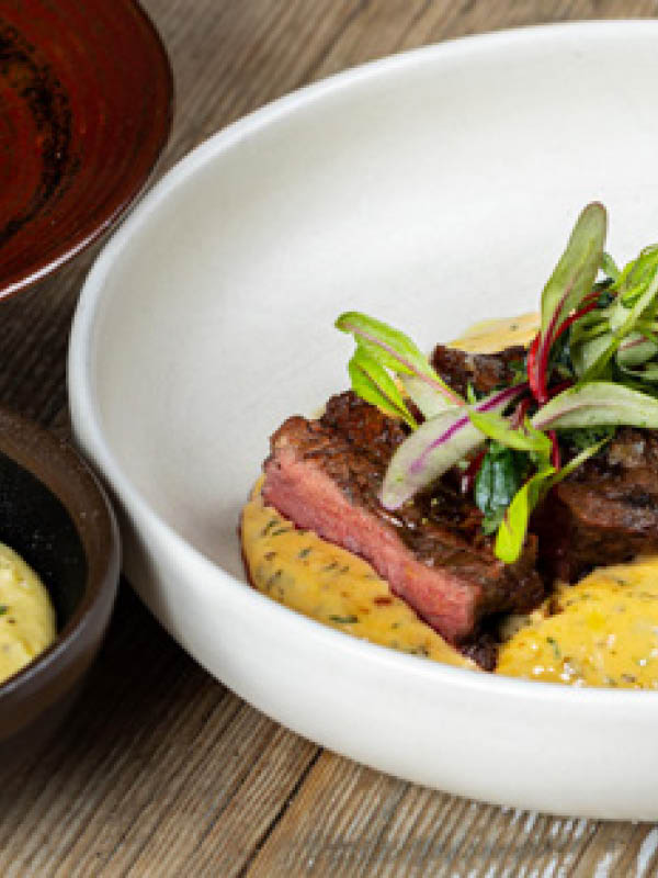 Biff och Bearnaise – En klassiker som man aldrig får glömma bort men som heller aldrig riskerar detta öde. En festmåltid och höjden av gastronomi i mångas ögon. En hörnsten på oändligt många restaurangers menyer och en storsäljare! Vår tappning kommer med influenser från Asien. Ponzurimmad och eldad biff med en varm emulsion smaksatt med soja och chili, grillade tomater vända med koriander samt bakad smörad potatis och cheddar. Serveras med fördel som mellan- eller varmrätt. Till denna FUSION-variant har Arvid Nordquist smaksättare används som ingredienser: Kikkoman Ponzu, Kikkoman Original, TABASCO® Buffalo Style, TABASCO® Original, Colman’s senapspulver.