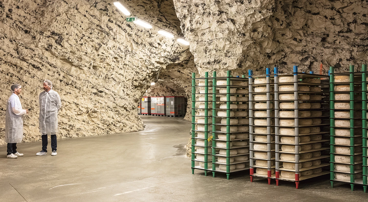 Här lagras ostarna i en konstant temperatur på runt + 8°C och en luftfuktighet på nästan 98%, vilket skapar idealiska förhållande för lagring och utvecklar smaker som inte kan skapas under normala lagringsförhållanden. Konsistensen blir ”blötare” och frodigare eftersom vattnet inte avdunstar i samma grad som under vanlig lagring.