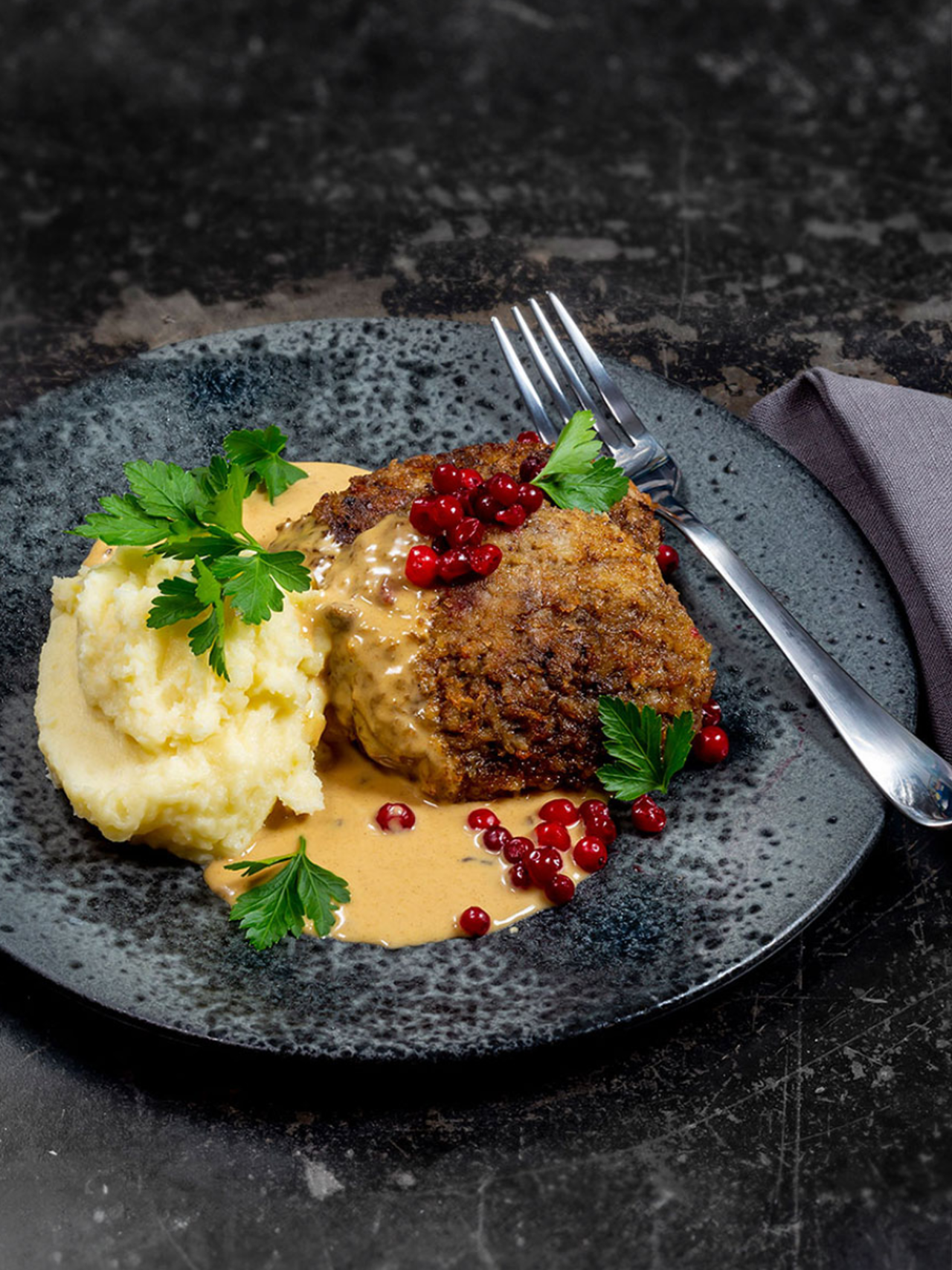Till wallenbergarna serverar vi en krämig potatispuré och en mustigt god kantarellsås. Såsen görs förstås på färska kantareller och piffas sedan ytterligare med hjälp av Touch of Taste Kantarellfond som förgyller smaken än mer. För att slutligen sätta pricken över i dekorerar vi tallriken med skogens röda guld, nämligen lingon. Resultatet blir en klassisk rätt med en höstig touch som lämnar få oimponerade.