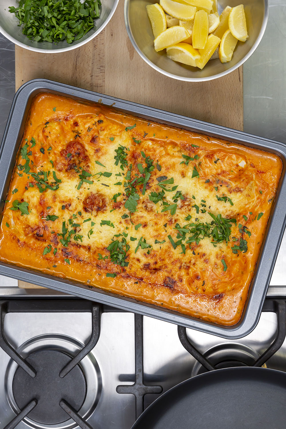 I den samverkar både Bongs MSC-certifierade fiskbuljong och Touch of Taste Hummerfond för att skapa en fyllig, balanserad sås som binder samman fisk, grönsaker och örter. Med krämighet från crème fraiche och syrlighet i tomatpuré och örter får du en gratäng som passar lika bra till kokt potatis som till potatismos.