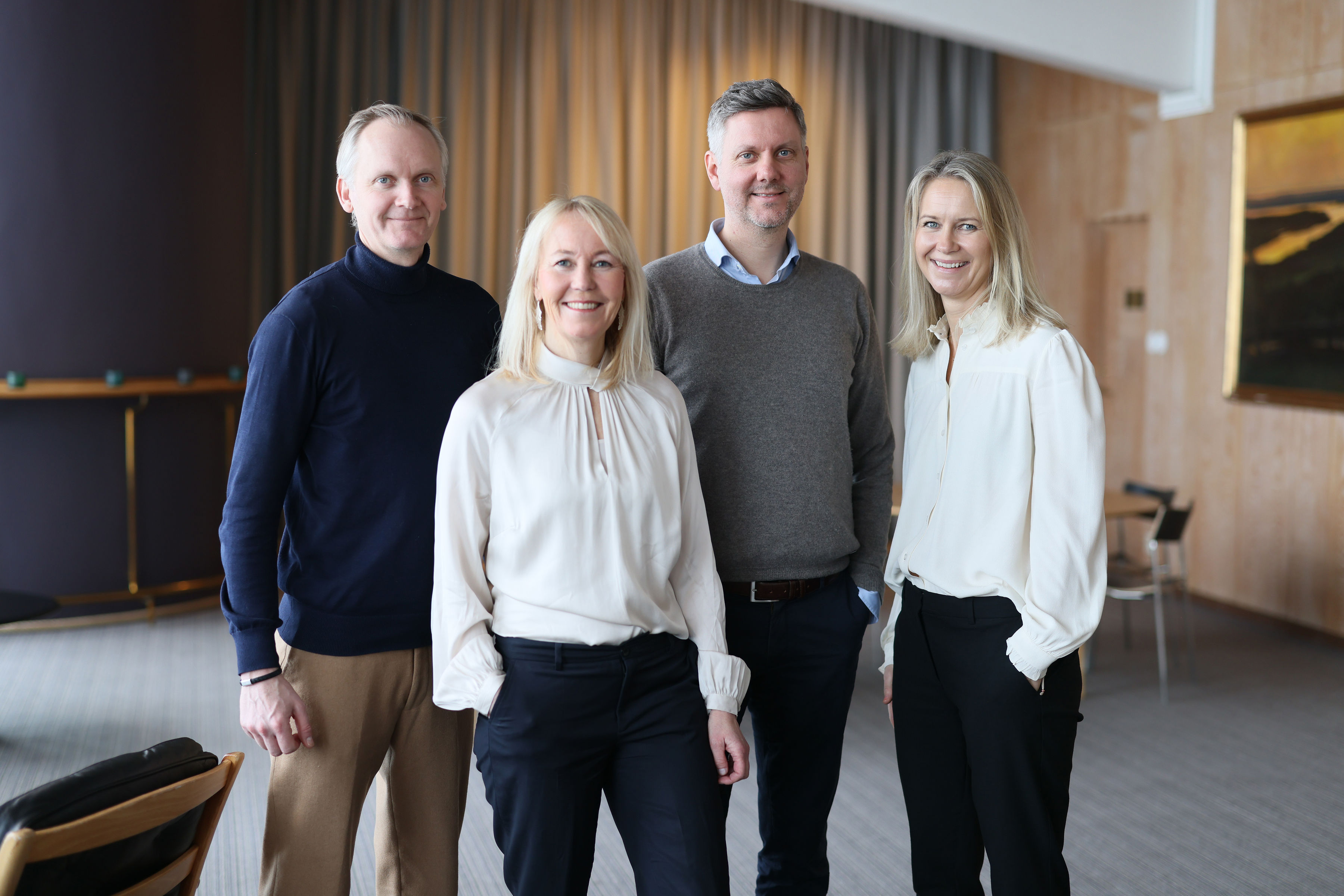 Från vänster: Martin Löfberg, vd för inköp och produktionsverksamheten, Kathrine Löfberg, styrelseordförande, Mikael Löfberg, styrelseledamot och Therese Gustafsson, vd för Familjen Löfberg Stiftelse.