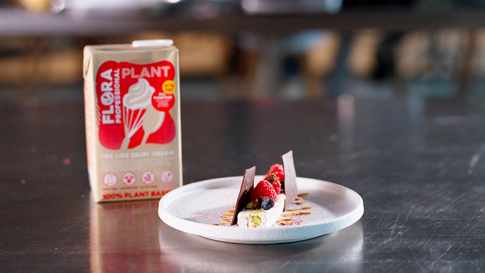 - Servera med vispad Flora Plant Visp 31% och säsongens frukt och bär.