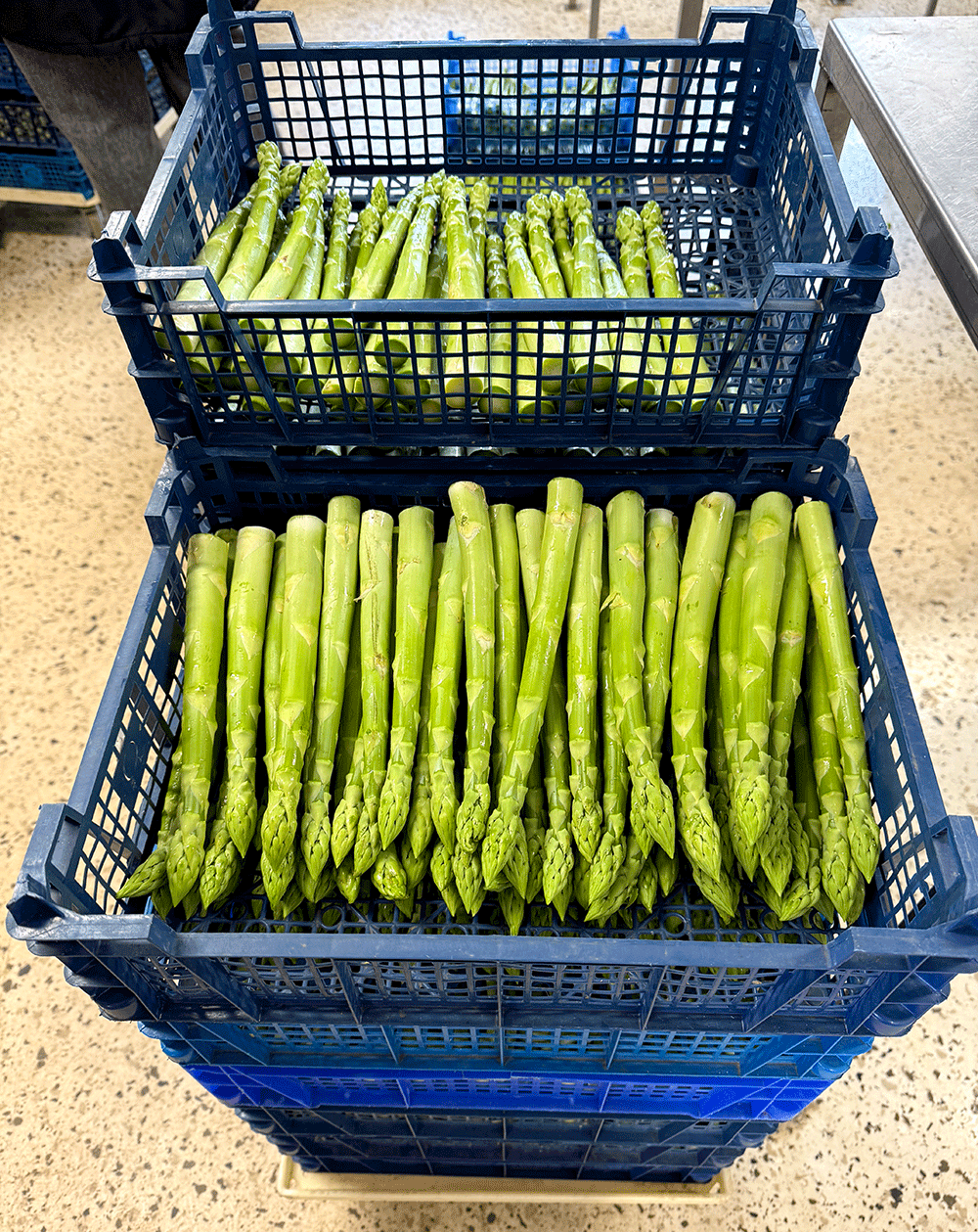 Varje år planteras 25 000 plantor per hektar på gården. Varje hektar genererar ungefär 3000 kilo sparris.
