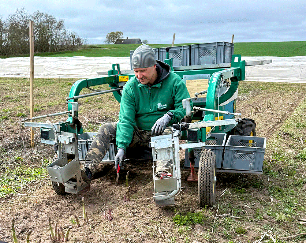 Friedrich Pape har ägnat större delen av sitt bondeliv åt att odla sparris i sitt hemland Tyskland. Det var först 2016 som han och familjen bestämde sig för att flytta till Sverige och börja bedriva sparrisodling på Österlens östra del.