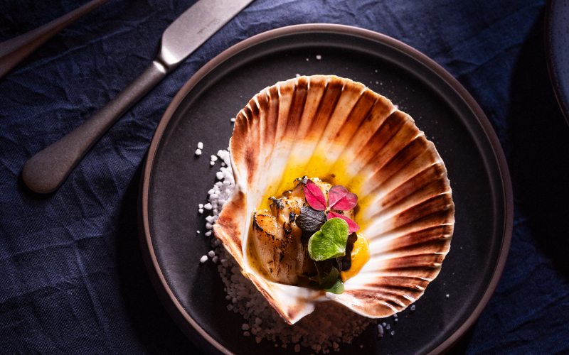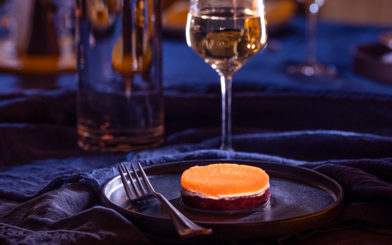 Med morot- och havtornsjuice, picklad rättika och kålrabbi.