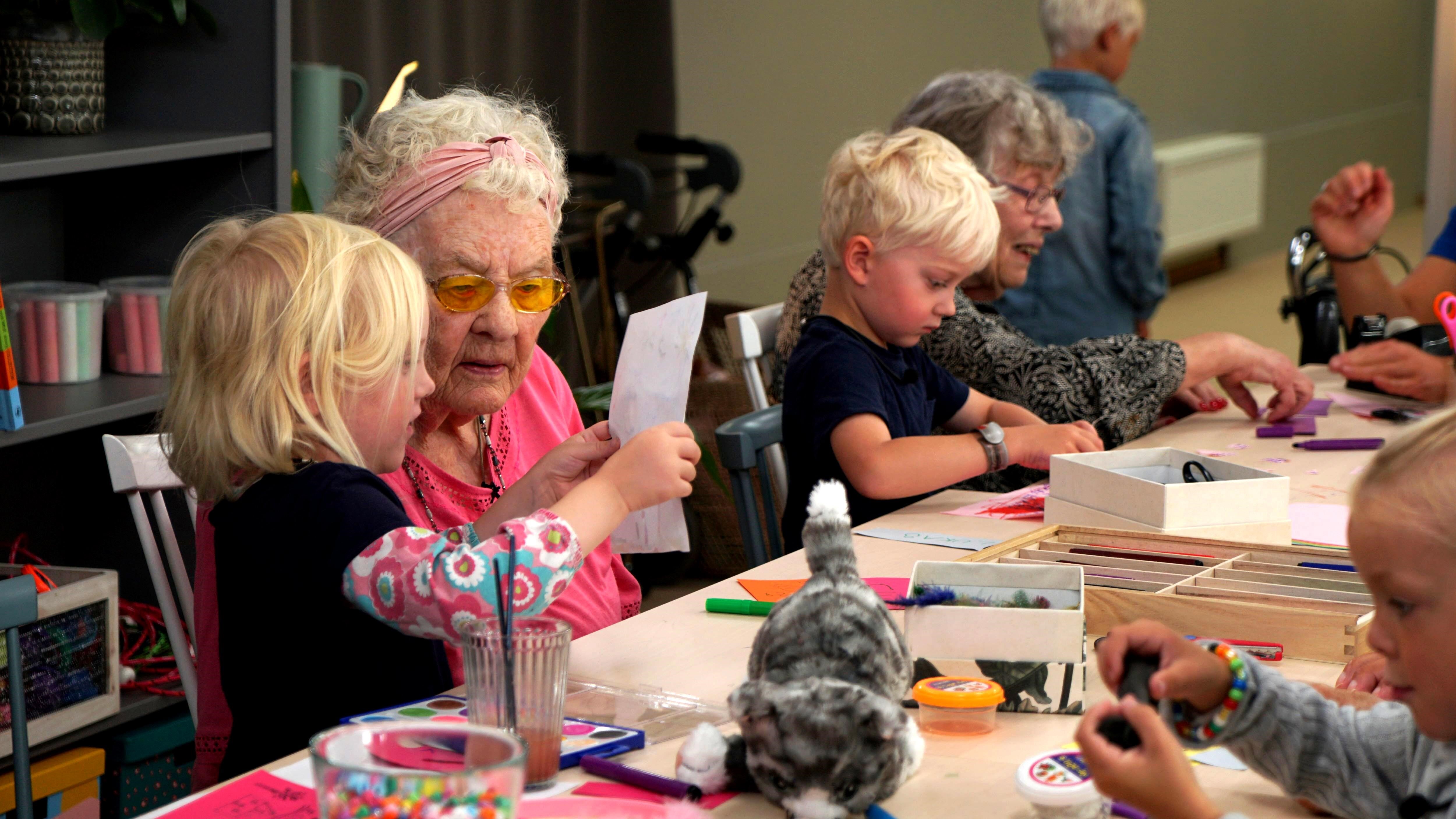 – Den är en dokumentärserie och ett slags experiment har gjorts i flera länder med syftet att se vad som händer med äldre personer när de umgås med barn. Vi på Attendo Maria Winqvist fick en förfrågan att delta eftersom vi har ett bra samarbete med förskolan bredvid, Vildnissarna. Dessutom har vi stora gemensamma utrymmen där alla kan umgås.