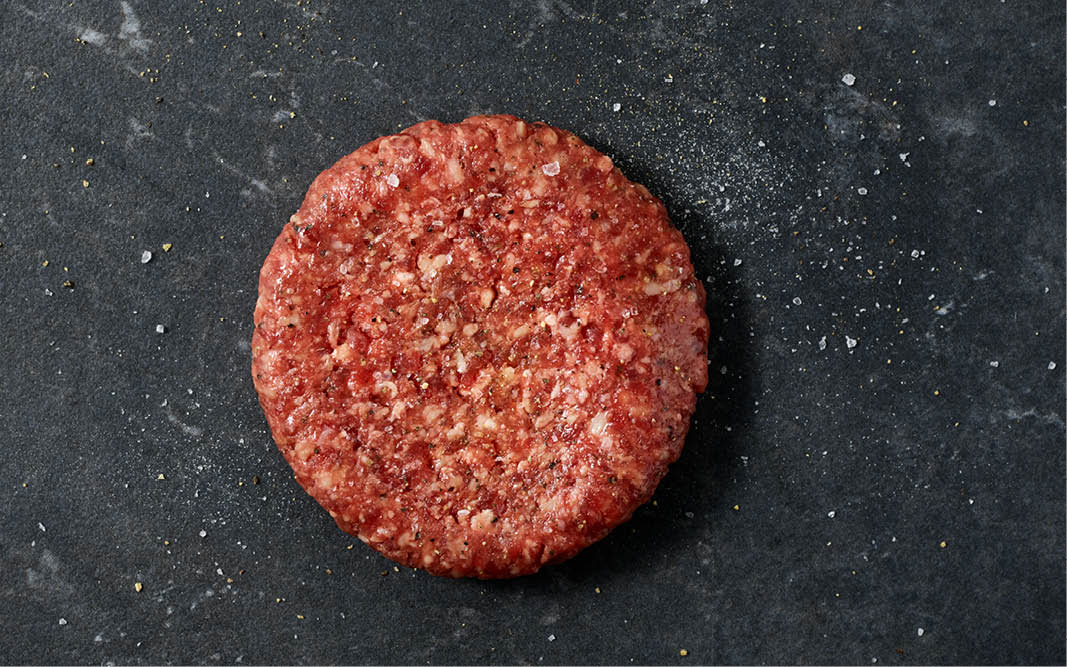 — Vi valde att jobba med ett slakteri som framför allt styckar kvigor, alltså yngre hondjur, eftersom de har en finlemmad muskulatur och ett mört kött. Vi tog bort benköttet från ljumskarna och neråt eftersom lägg och benfästen har mycket senor. Därefter mixade vi upp blandningen med rib meat som har en riktigt bra fettansamling och är ett mört och trevligt kött. Vi använde bara mittdelen på revbenen för att undvika benflisor och brosk, som annars kan uppstå vid högre malningsgrad.